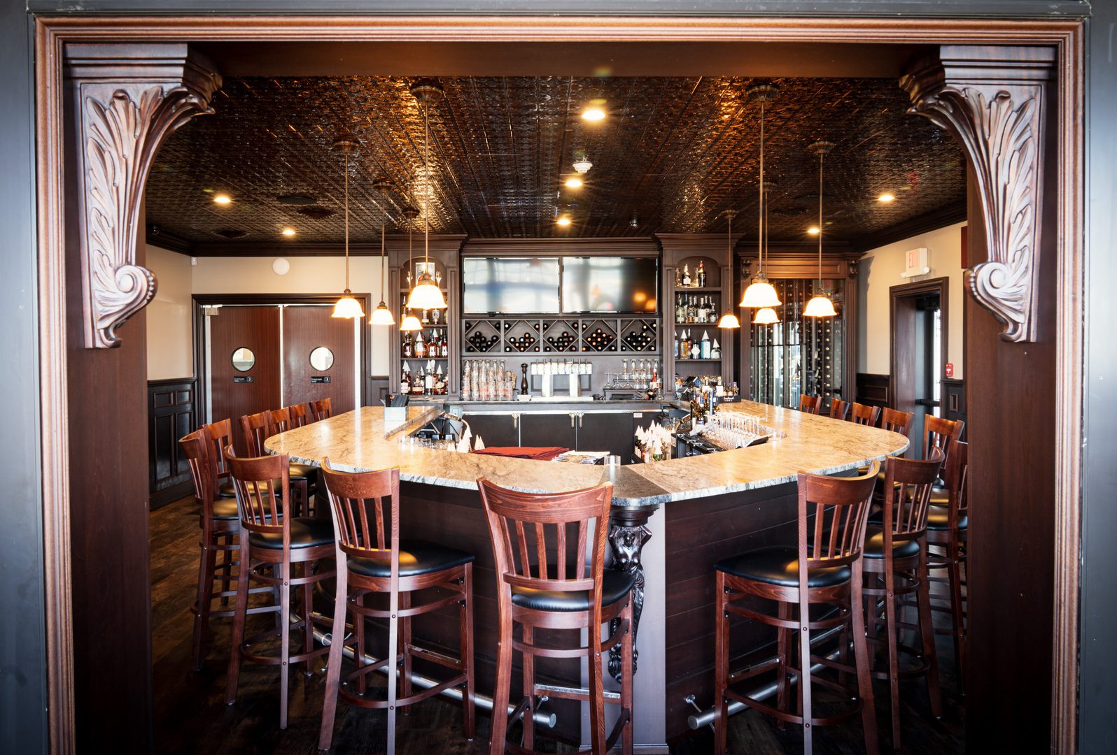 The robust drink menu boasts bourbon, cordials, gin, rum, whiskey, scotch, tequila, vodka, craft beers, ciders, and more. Fan favorites include the Smoked Old Fashioned, Espresso Martini, and Sangria.