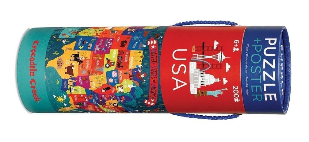 Description: Crocodile Creek is known for its amazing array of toys and puzzles. This world map jigsaw puzzle teaches kids about geography in a fun and creative way. The finished puzzle measures 19″ wide x 13″ high and the matching poster is 16″ x 24″. This particular kit contains 200 thick puzzle pieces. It’s beautifully illustrated and made from high-quality, sturdy board. Other tube puzzles available include USA Map and Space.