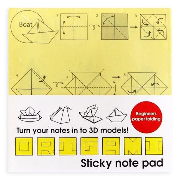 Description: Creating origami (paper art) helps pass time. Help your kids alleviate boredom over winter break with a fun and creative activity! This notepad contains 100 sticky notes (7.5 x 7.5 cm) with easy origami instructions to follow. Kids can bend and twist their little paper into 10 different shapes, such as a crane, boat, butterfly and lily.