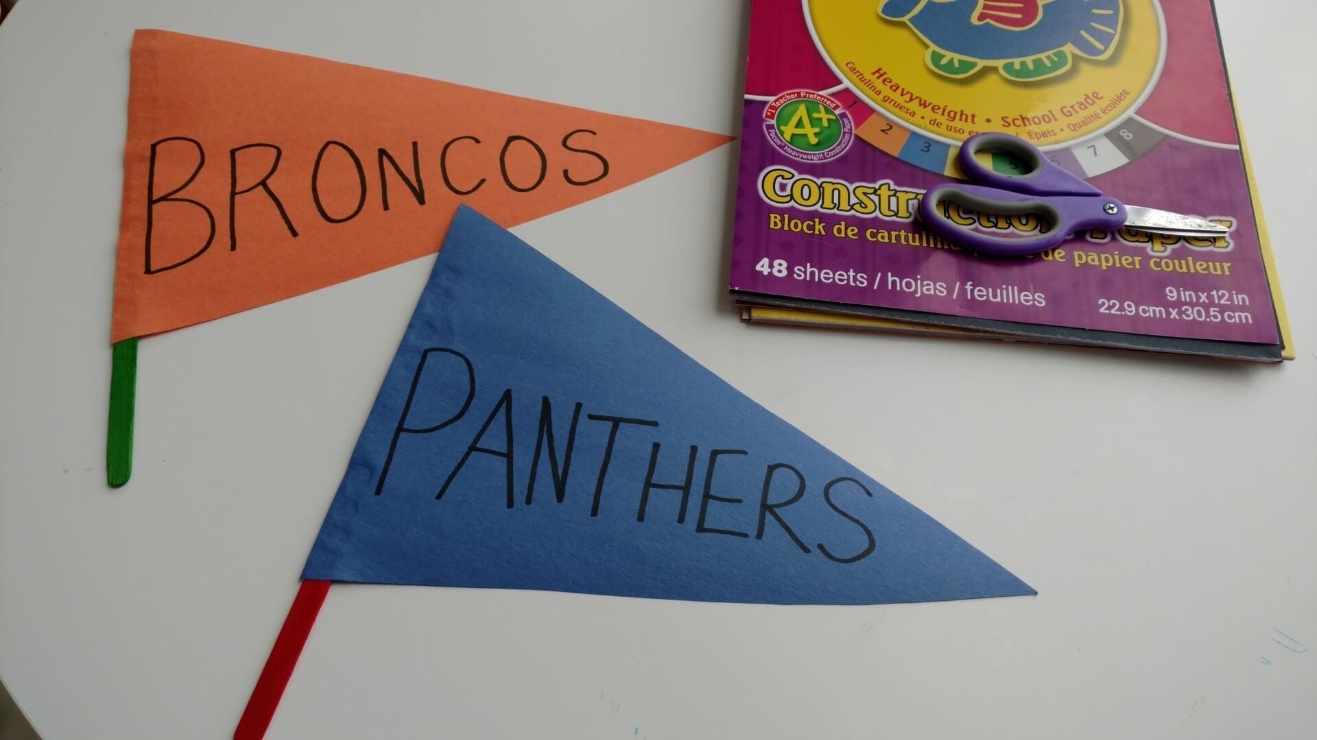 You can keep it simple by bringing along coloring books and some crayons for the little ones. Or if you really want to be a fun parent, try searching for an easy Super Bowl craft on Pinterest. There are tons. You’ll find everything from cute footballs to toilet paper roll players to team pennants. Have your kids cut out triangle shapes, trace the letters and glue popsicle sticks on the back. Go team, go!