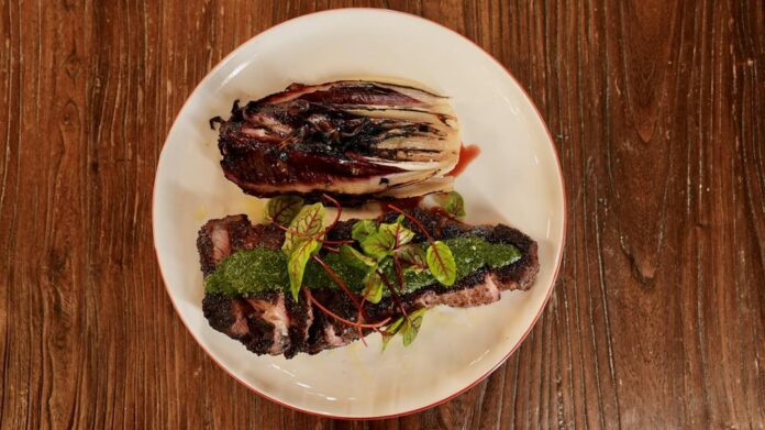 The menu at La Lupa changes every three to four weeks and highlights seasonal flavors and ingredients. For example, during peak season for ramps (a species of wild onion) they make a ramps pasta. Likewise, current favorites include the clam pie and Tuscan fried chicken starters. Handmade pastas are also a highlight, as they are made fresh in house. But Dan raves about the 36-ounce, 48-day dry-aged ribeye made on a charcoal grill from Japan. “You’ve never tasted anything like this,” he says.