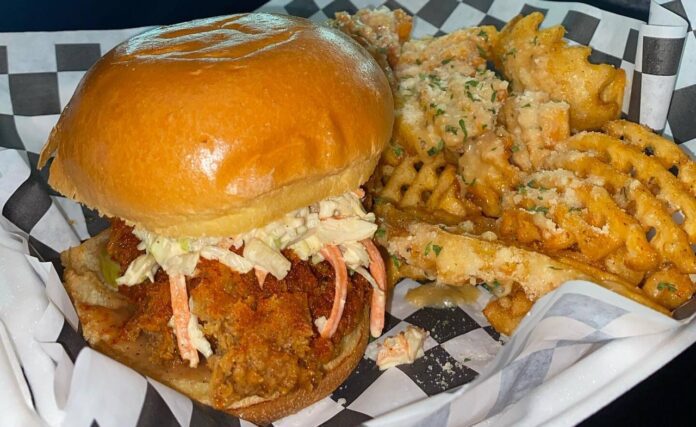 Popular menu items include wings, chicken sandwiches, and cauliflower wings (which are vegetarian). Taylor Wings offers multiple sauce options, with fan-favorite flavors being Sweet Buffalo, Garlic Butter Old Bay, and Honey Chipotle. But new sauces will rotate in every so often, as Rashaan loves experimenting with flavors. They also have an array of fries including plain, garlic parm, cheese, vegan cheese, and Cajun. Rashaan uses separate fryers for vegan and non-vegan items.