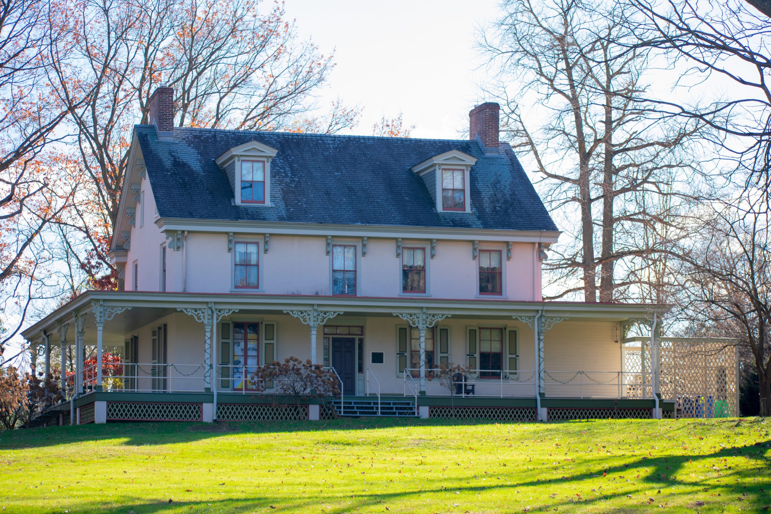 Paulsdale is recognized as a National Historic Landmark, and is also on the New Jersey Register of Historic Places. The large property features a quaint farmhouse with a wraparound porch at the end of a long driveway. In addition, the six-and-a-half acre property serves as the headquarters for the Alice Paul Institute; where members “honor the legacy of Alice Paul’s work for gender equality through education and leadership development.”