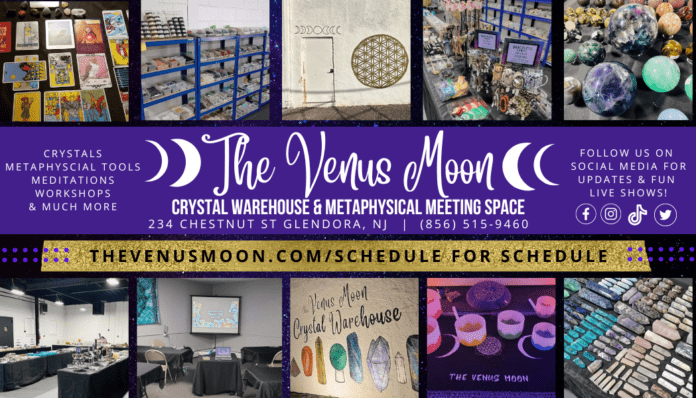 Krissy lives in nearby Blackwood. Prior to The Venus Moon, she was a manager, makeup artist, and certified fragrance expert at Sephora. She then became a makeup artist at Bluemercury. “I have been very intuitive since childhood, remembering my first encounter with spirit at age 4,” she says. She began tarot reading around 2012. “It eventually went from a hobby, reading for friends and family, to professional readings both in person and online internationally,” she says.