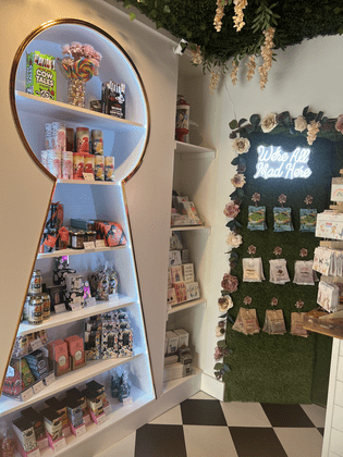 It will come as no surprise that TweedleTee’s has an Alice in Wonderland theme. The shop provides “something for everyone,” with a variety of classic, nostalgic, novelty, and naturally dyed and flavored items. Tanya’s current favorite sweets include the Seattle Chocolate’s Malted Milk Ball Pint and JCoco’s Mango & Sticky Rice Chocolate Bar. She also loves the Bon Bon sour elderflower fish.