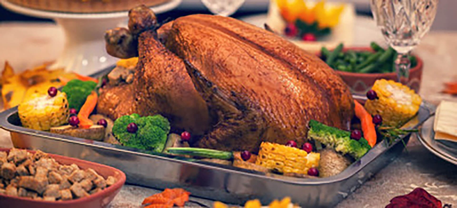 Solution: Ditch the roasted whole bird. Slice thin medallions of turkey breast, and sear them with a bit of olive oil until brown. Finish the medallions in an oven set to 350°F. Deglaze the roasting with gravy and finish with cranberry sauce.