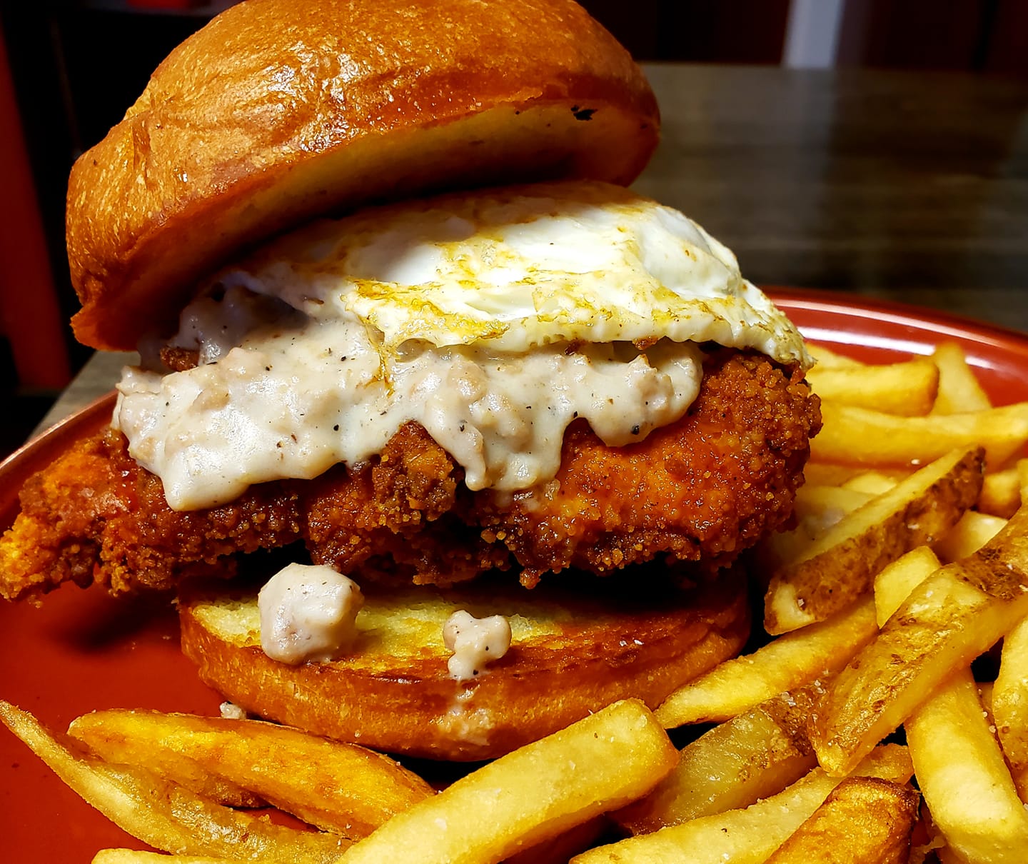 They also take customer feedback when it comes to rotating specials. For example, the Country Fried Chicken Sandwich is now a permanent menu item thanks to customer requests. It’s topped with Yard-made sausage gravy and a fried egg. They serve other chicken sandwiches, “but this one definitely stands out as a perfect comfort food option,” Amy says.