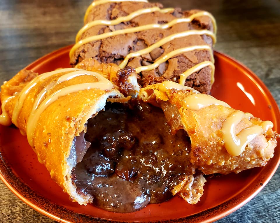 But if you’re not in the mood for a burger, don’t worry, their empanadas are crowd pleasers too. These hand-braided delights contain sweet or savory fillings like Philly cheesesteak, buffalo chicken, or chocolate chip cookie dough; the latter is an instant favorite of the staff.