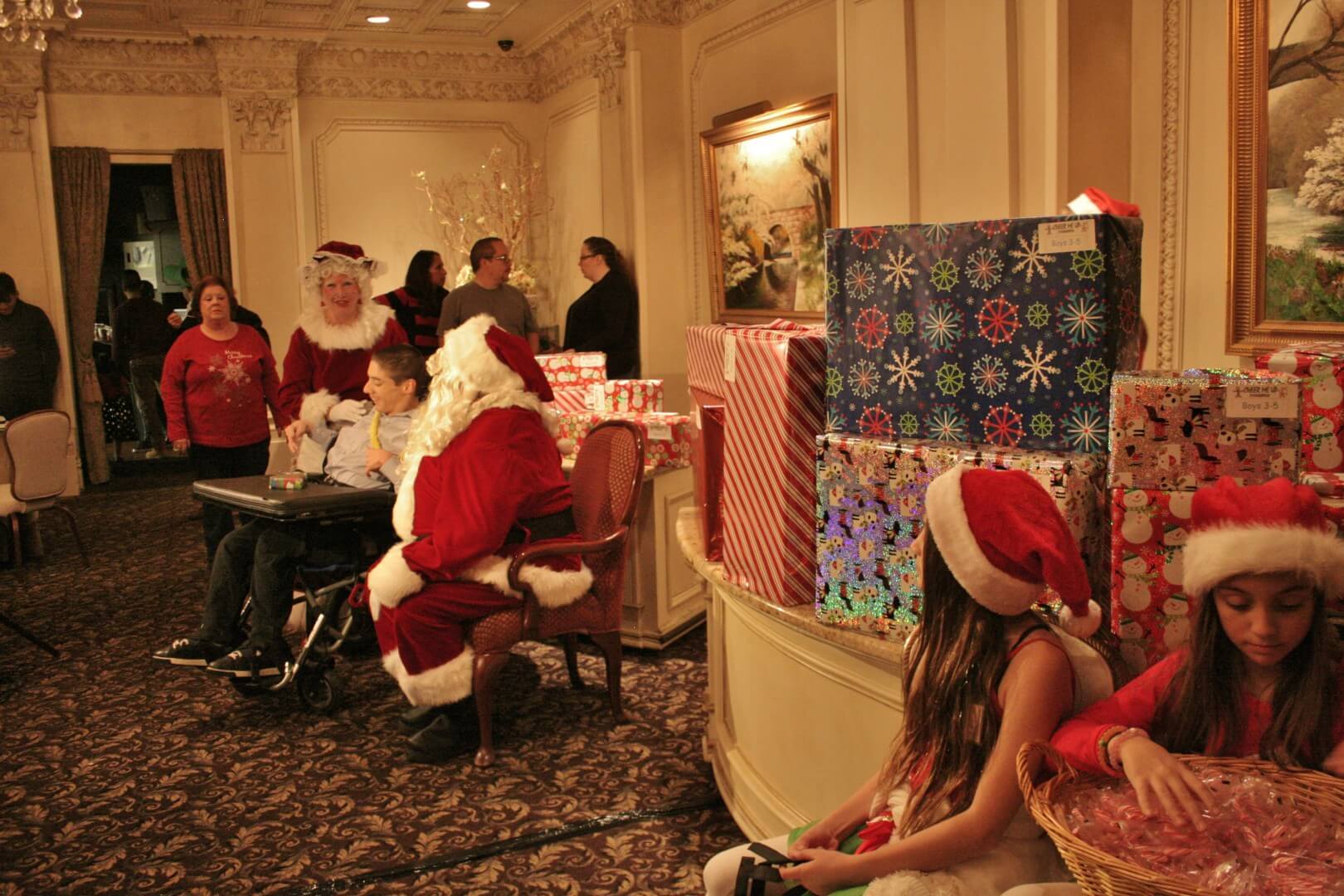 Numerous characters like Elsa, Olaf, SpongeBob, and Mario and Luigi danced and took pictures with the mesmerized kids who dominated the dance floor. Boys and girls got their faces painted and scarfed down tons of candy, popcorn, and homemade cookies that were offered alongside pretzels, cotton candy, nachos, and other goodies. Mr. and Mrs. Claus even took their sleigh out a few days early to visit all the good boys and girls who came to the party. The couple took pictures with, and gave remarkable gifts to, all the wonderful children.