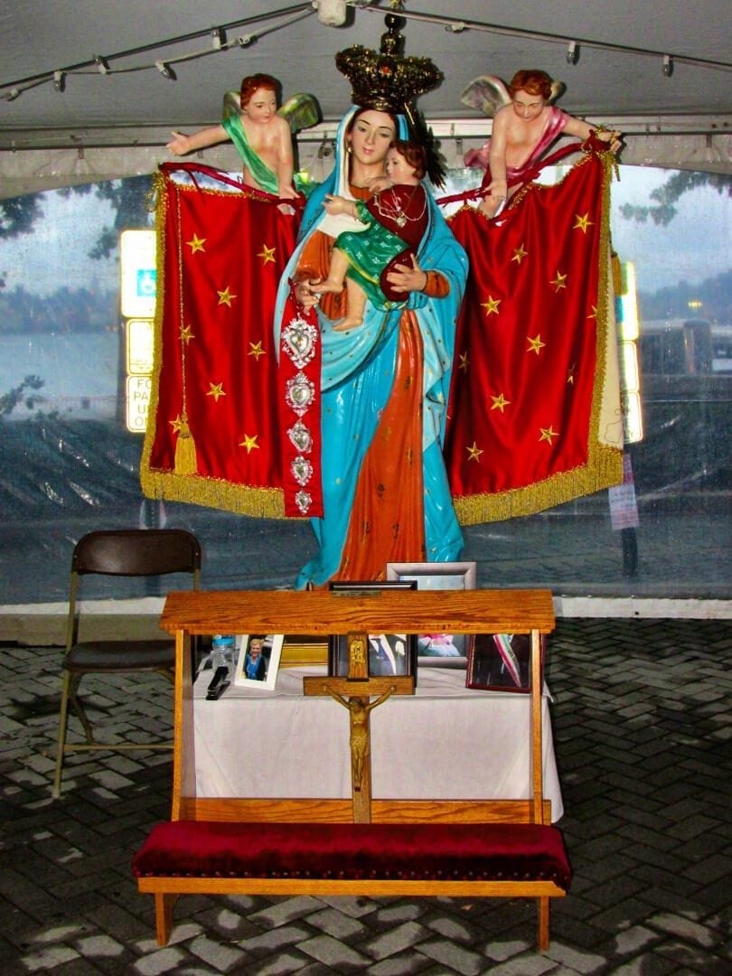Note, the procession of the Madonna del Martiri most likely has been rescheduled because of the rain. We are still trying to get the latest information on that. Update: We just learned that they started the procession at 1:30 pm and ended up at the festival at 3:30 pm. The procession is scheduled to finish up tonight at St. Francis Church at 8:00 pm.