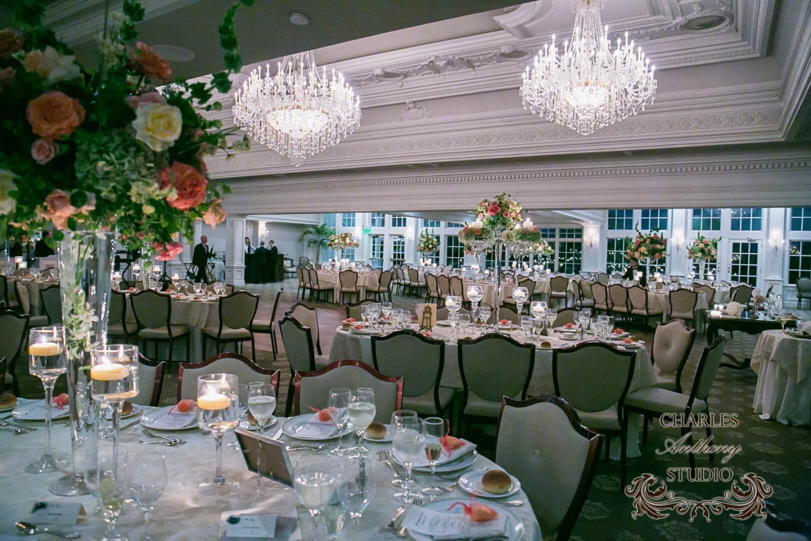 Their inspiration clearly shines through. After entering the mansion, guests see a breathtaking staircase; meanwhile the natural light of the cocktail and ballrooms draws them further inside. Guests find the grand ball fits a turn of the century gala just as well as an elegant wedding today.